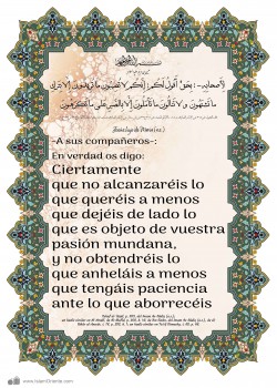 Si hacéis lo que os mandamos y os abstenéis de [hacer] todo lo que os prohibimos, sois de nuestros chiitas, de lo contrario nunca [lo seréis].