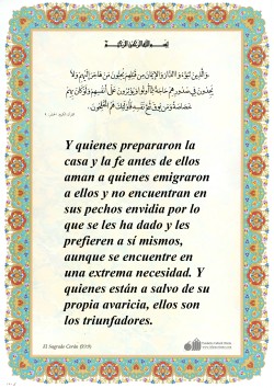 La virtud no consiste en que volváis vuestros rostros hacia Oriente u Occidente. La virtud consiste en creer en Dios y en el Último Día, en los ángeles, en la Escritura [Sagrada] y en los profetas. En dar de los bienes, por mucho amor que se les tenga,[1] a los familiares, a los huérfanos, a los…