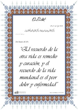 Del Imam ‘Alí (P): " - Sobre las características del estado de un creyente -: 'Vivifica su intelecto y hace morir a su alma, hasta quebrantar su vanidad y suavizar su rudeza, brillando para él el resplandor de muchos relámpagos que le aclaran el camino y lo conducen por el mismo. Los…