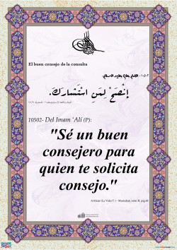 Del Imam ‘Alî (P): Brinda a tu amigo todo el cariño, y no le brindes toda la confianza. Concédele con toda la asistencia, pero no le comuniques todos los secretos; (de esta manera) observarás tanto el derecho de la sapiencia como el deber para con el amigo.[I]