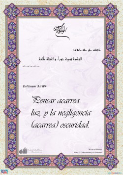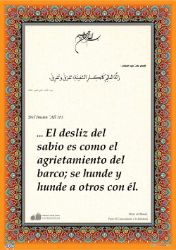 Del Imam ‘Alî (P): en sus consejos a su hijo Al-Husain (P): ¡Bravo! ¡Bravo por aquel sabio que actúa (según su conocimiento) y se esfuerza en ello, que teme el asalto nocturno de la muerte por lo que se prepara y dispone! Si se le pregunta aconseja, y si se le deja hace silencio; sus palabras…