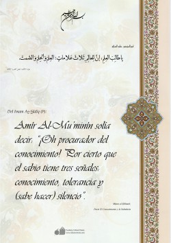 Del Imam Al-Kâdzim (P), en sus consejos a Hishâm: “¡Oh Hishâm! Ciertamente que toda la gente ve las estrellas, pero no se encamina mediante las mismas sino aquel que conoce sus trayectorias y sus ponientes. Asimismo vosotros estudiáis la sapiencia, pero no se encamina mediante la misma sino quien…
