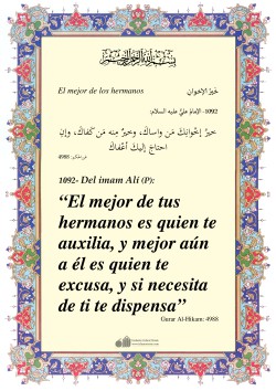 Del Imam ‘Alí (P): "... ¡Oh, hijo mío! Por cierto que es necesario para el juicioso observar su posición y entonces preservar su lengua y conocer la gente de su época."