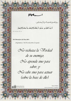 Del Imam ‘Alí (P): "...No piensen que una verdad que se me dice me resulta insoportable, ni que busco el engrandecimiento de mi alma. Pues quien no soporta la verdad que se le dice o la justicia que se le expone, menos soportará obrar con ellas. Entonces no rehúses decir una verdad o dar una…