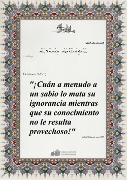 “Por cierto que Alí (P) era sabio, y el conocimiento se hereda, y no desaparecerá ningún sabio sin que después de él perdure quien conozca su conocimiento, o tanto como Al-lah quiera”.