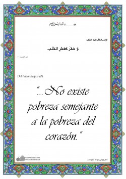 “Por cierto que Al-lah me instituyó como Imam para Sus criaturas, y entonces me impuso la mesura en cuanto a mi ser, y mi comida, y mi bebida, y mi vestir, al igual que los más desposeídos de la gente, para que el pobre tome como ejemplo mi pobreza, y que el pudiente no sea…