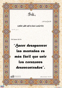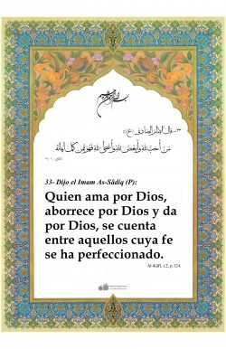 “No afirmó Al-lah el amor a Alí en el corazón de un creyente y permaneció con él predominante, sin que Al-lah afirmara su paso sobre el Sendero (sirat) el Día de la Resurrección”.