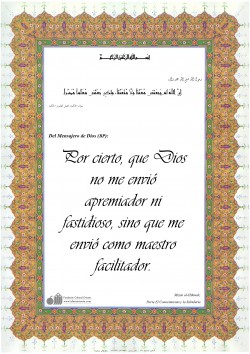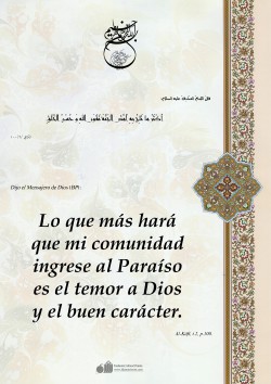 “Por cierto que Al-lah, Poderoso y Majestuoso, me dio a conocer acerca de Alí una decisión. Yo pedí: ‘Señor mío, muéstralo para mí’ Respondió: ‘Oye’ Dije: ‘Escucho’ Expresó: ‘Por cierto que Alí es el emblema de la buena guía, y el conductor de Mis elegidos, y la…