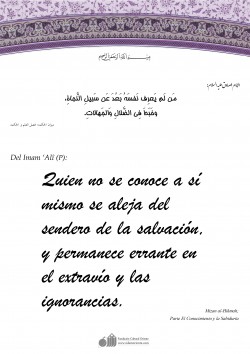 respecto de la condición de los Imames (P) y sus atributos: “Al-lah hizo de ellos vida para los seres, y luminarias para las sombras, y claves para las argumentaciones, y pilares del Islam”.