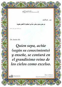“Si Al-lah, Poderoso y Majestuoso, elige realmente a un siervo para los asuntos de Sus siervos le insufla (amplía) su pecho para eso, y deposita en su corazón fuentes de Sabiduría, y le inspira el conocimiento espontáneamente, y nunca tendrá luego incertidumbre sobre…