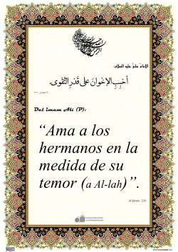 Del Mensajero de Allah (BP): “Cuando alguno de vosotros se hermane con otro que le pregunte por su nombre y el nombre de su padre, y por su tribu y su domicilio, porque esto es en verdad una exigencia de la verdad y de la pureza de la hermandad, de lo contrario sería un afecto entre necios”
