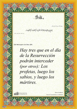 Del Mensajero de Dios (BP): Cualquier adolescente que se forma sobre la base de la procura del conocimiento y la adoración hasta que crece, Dios le otorga el día de la Resurrección la recompensa de setenta y dos (que han alcanzado el grado de) veraces.[I]
