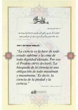 Del Imam ‘Alí (P): “Dios no comprometió a la gente ignorante que solicitaran la aclaración de la ciencia hasta haber pactado con la gente del conocimiento para que diluciden la ciencia para los ignorantes. Porque el conocimiento está antes que la ignorancia."