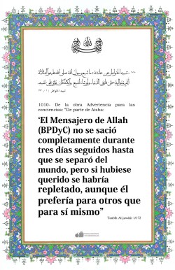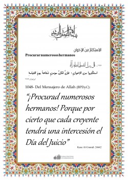 Del Profeta (BPD): "¡Oh, hijos de Abdul Muttalib! ¡Por Dios!, no conozco un joven entre los árabes que haya traído a su pueblo algo mejor de lo que les he traído. Os he traído el bien de este mundo y del otro. Dios Altísimo me Ha ordenado que os convoque hacia El."