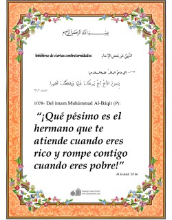Del Imam As-Sâdiq (P), en sus consejos a Muhammad Ibn An-Nu‘mân: “¡Oh Ibn An-Nu‘mân! No procures el conocimiento por tres cosas: para hacer ostentación con él, para porfiar con él, y tampoco para diputar con él; y tampoco lo dejes de lado por tres cosas: deseo por la ignorancia, apatía con relación…
