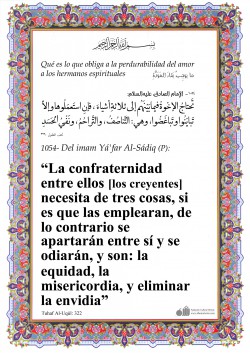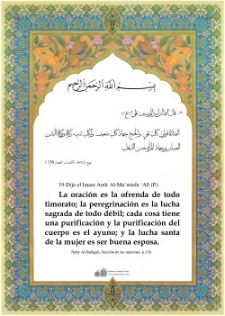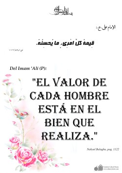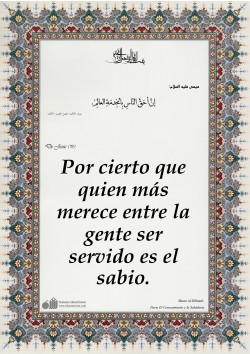 Del Imam Alí (P):” ¡Aprended la Ciencia! Por cierto que su estudio es una buena acción, su difusión una glorificación, su investigación es un combate y enseñarla a quien no la conoce es caridad. Ella es la afabilidad con el temor, una compañía en la soledad, un arma contra los enemigos y un adorno…