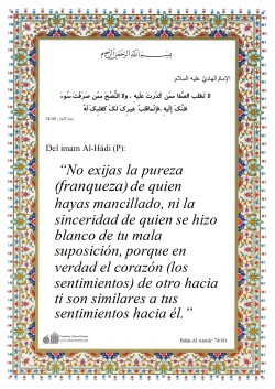 Del Imam ‘Alî (P): Toma la sapiencia dondequiera que se encuentre, que ciertamente que la sapiencia fluctúa en el pecho del hipócrita hasta que sale y habita junto a sus compañeros en el pecho del creyente.[I]