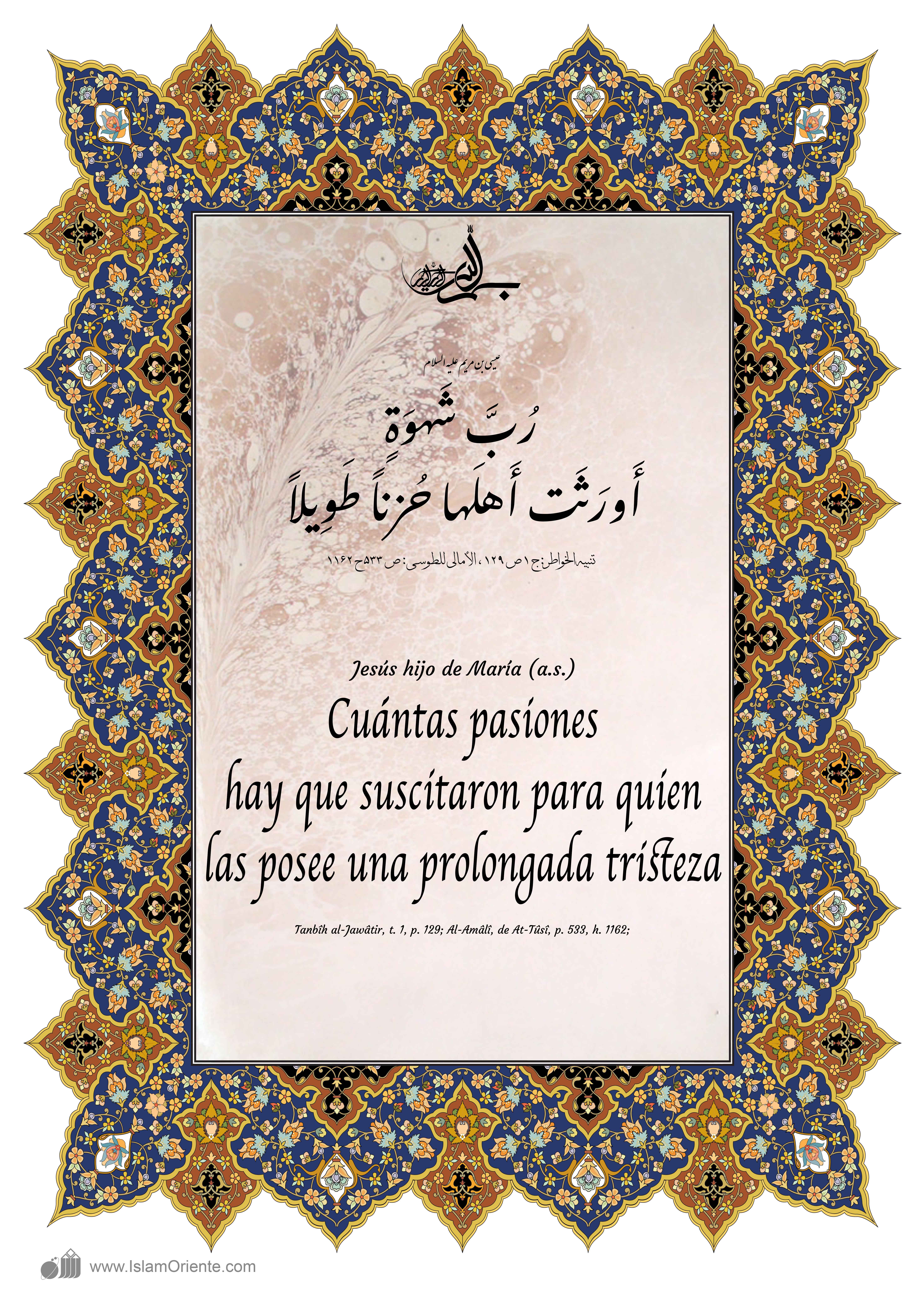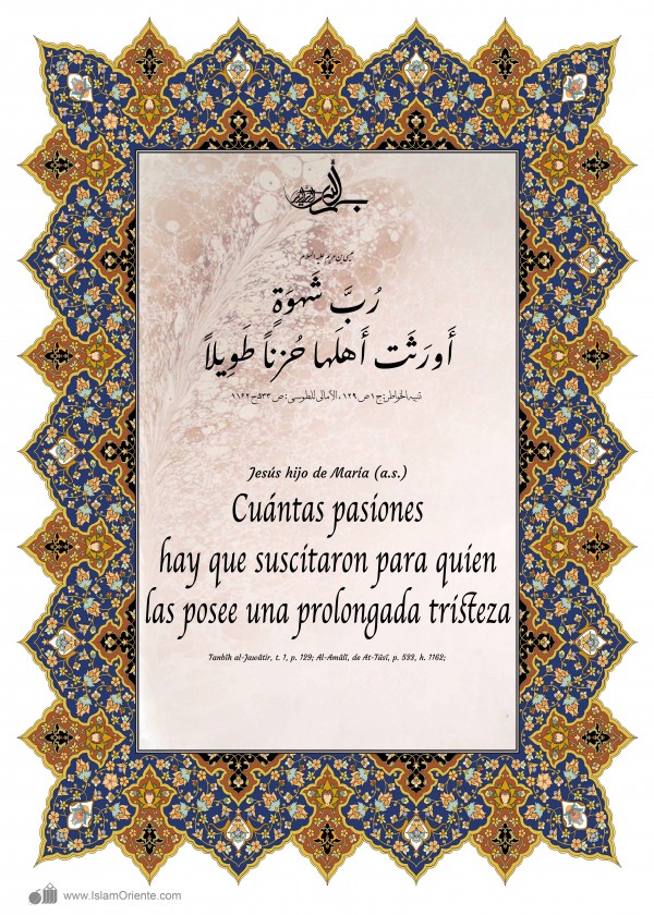 Jesús hijo de María (a.s.): ¡Cuántas pasiones hay que suscitaron para quien las posee una prolongada tristeza![2]