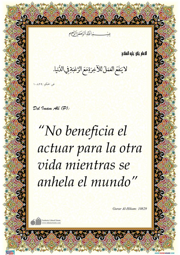 Del Imam Alí (P): “No beneficia el actuar para la otra vida mientras se anhela el mundo”
