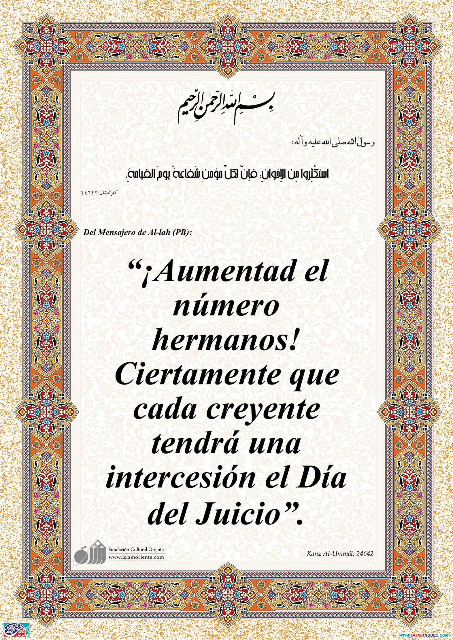 Del Mensajero de Al-lah (PB): “¡Aumentad el número hermanos! Ciertamente que cada creyente tendrá una intercesión el Día del Juicio”.