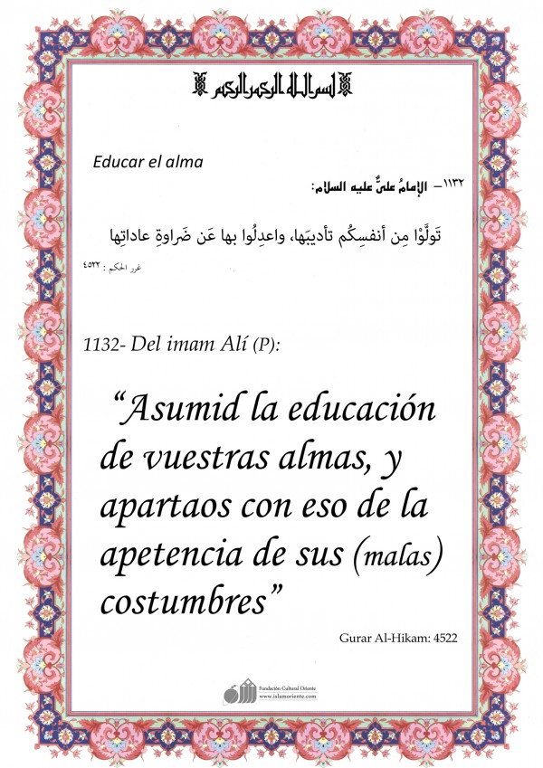 Del imam Alí (P): “Asumid la educación de vuestras almas, y apartaos con eso de la apetencia de sus (malas) costumbres”