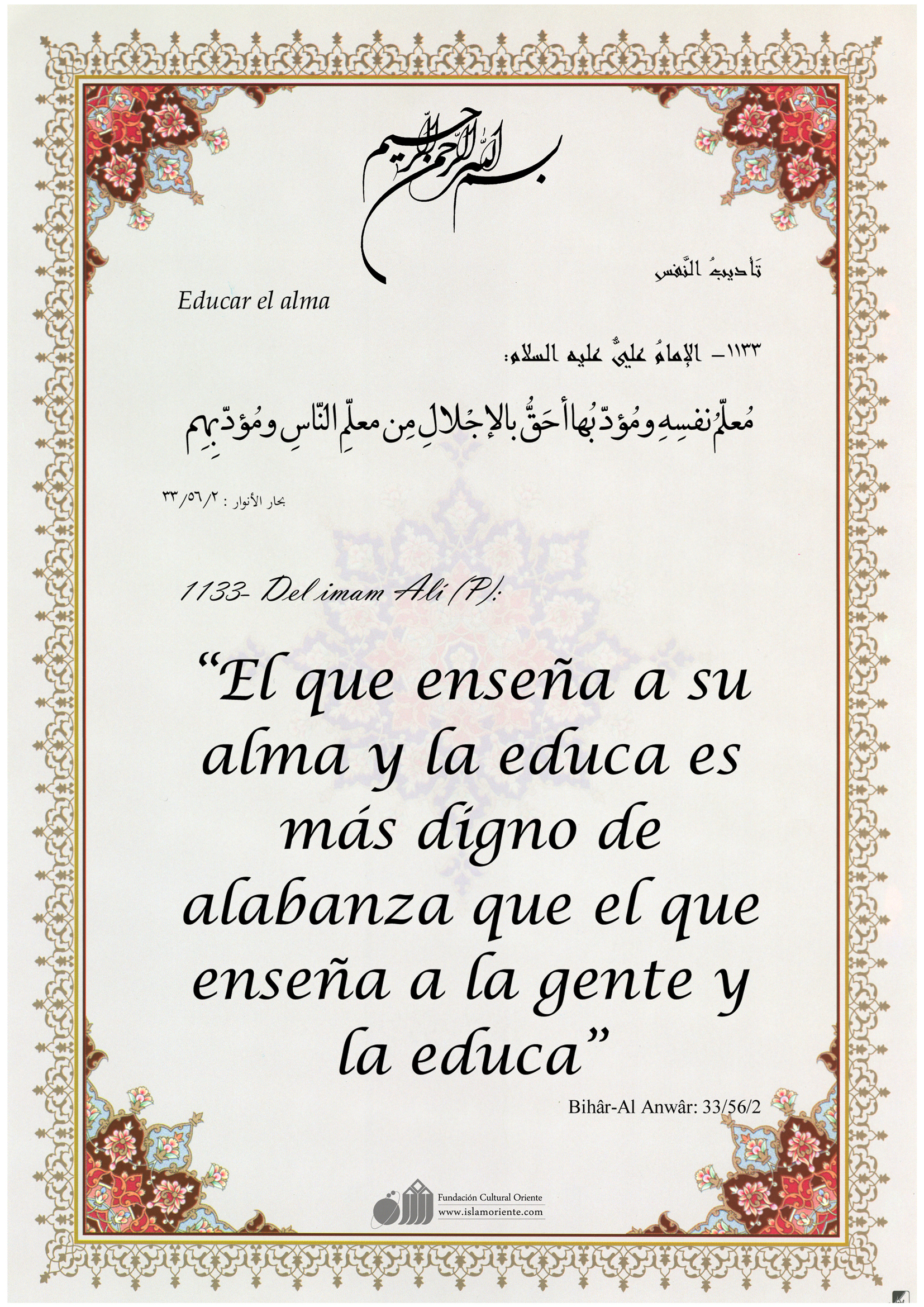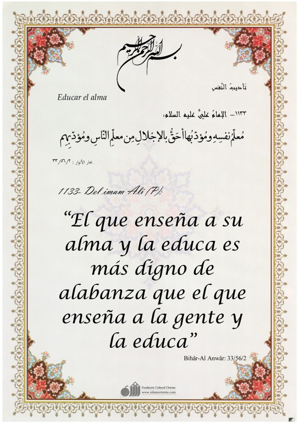 Del imam Alí (P): “El que enseña a su alma y la educa es más digno de alabanza que el que enseña a la gente y la educa”