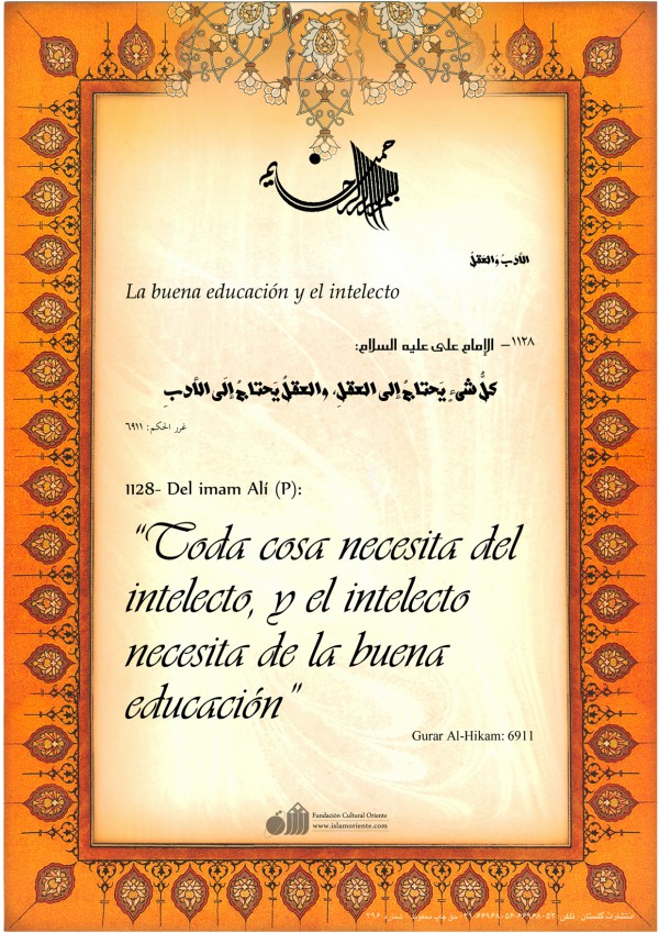 Del imam Alí (P): “Toda cosa necesita del intelecto, y el intelecto necesita de la buena educación”