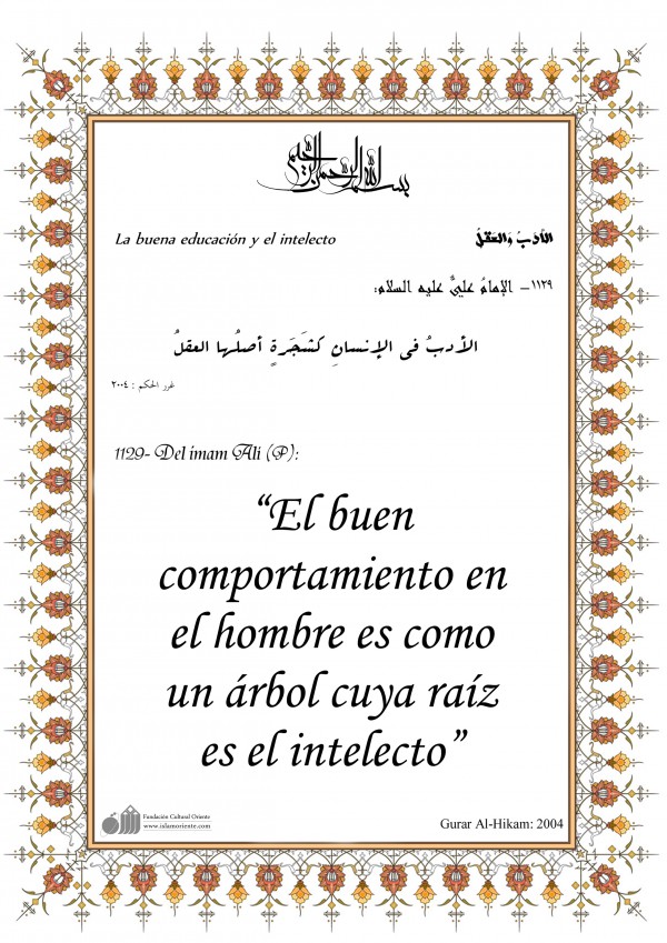 Del imam Alí (P): “El buen comportamiento en el hombre es como un árbol cuya raíz es el intelecto”