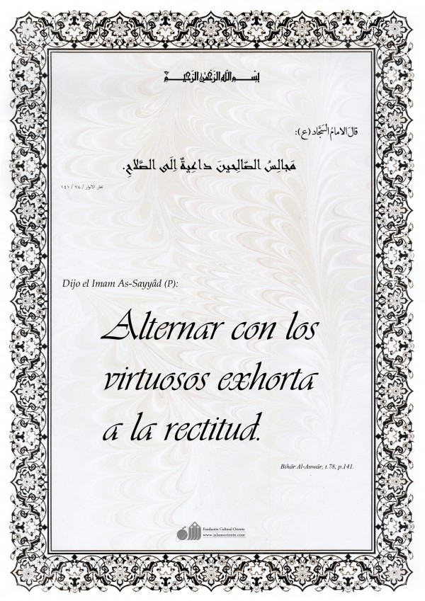 Dijo el Imam As-Sayyâd (P): Alternar con los virtuosos exhorta a la rectitud.
