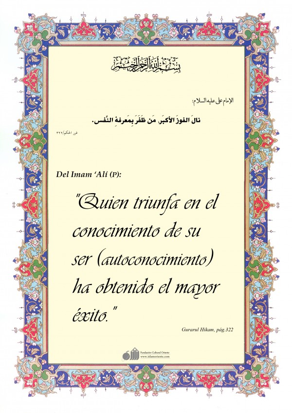 Del Imam ‘Alí (P): "Quien triunfa en el conocimiento de su ser (autoconocimiento) ha obtenido el mayor éxito."