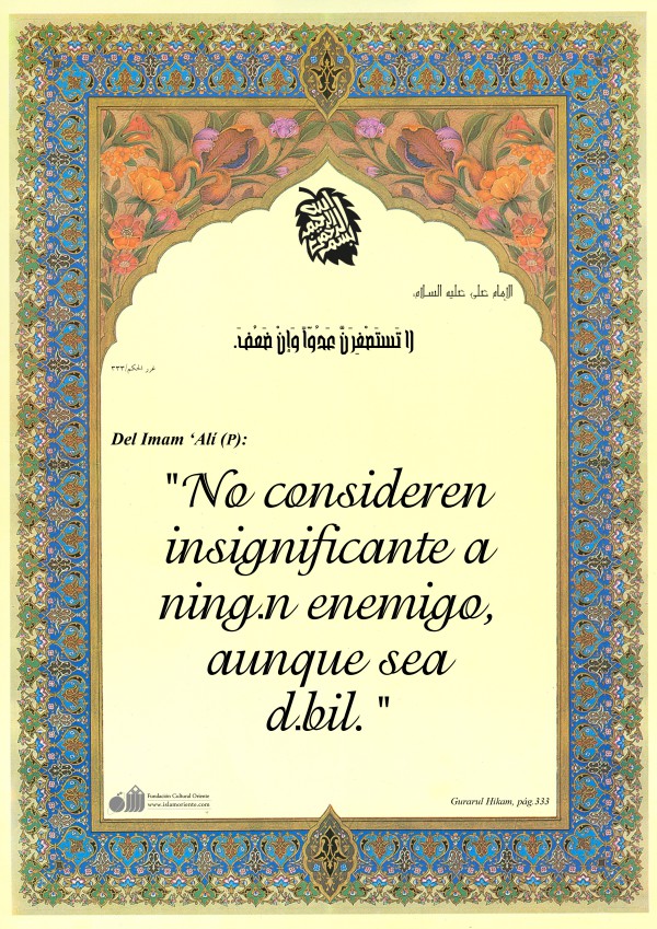 Del Imam ‘Alí (P): "No consideren insignificante a ningún enemigo, aunque sea débil."