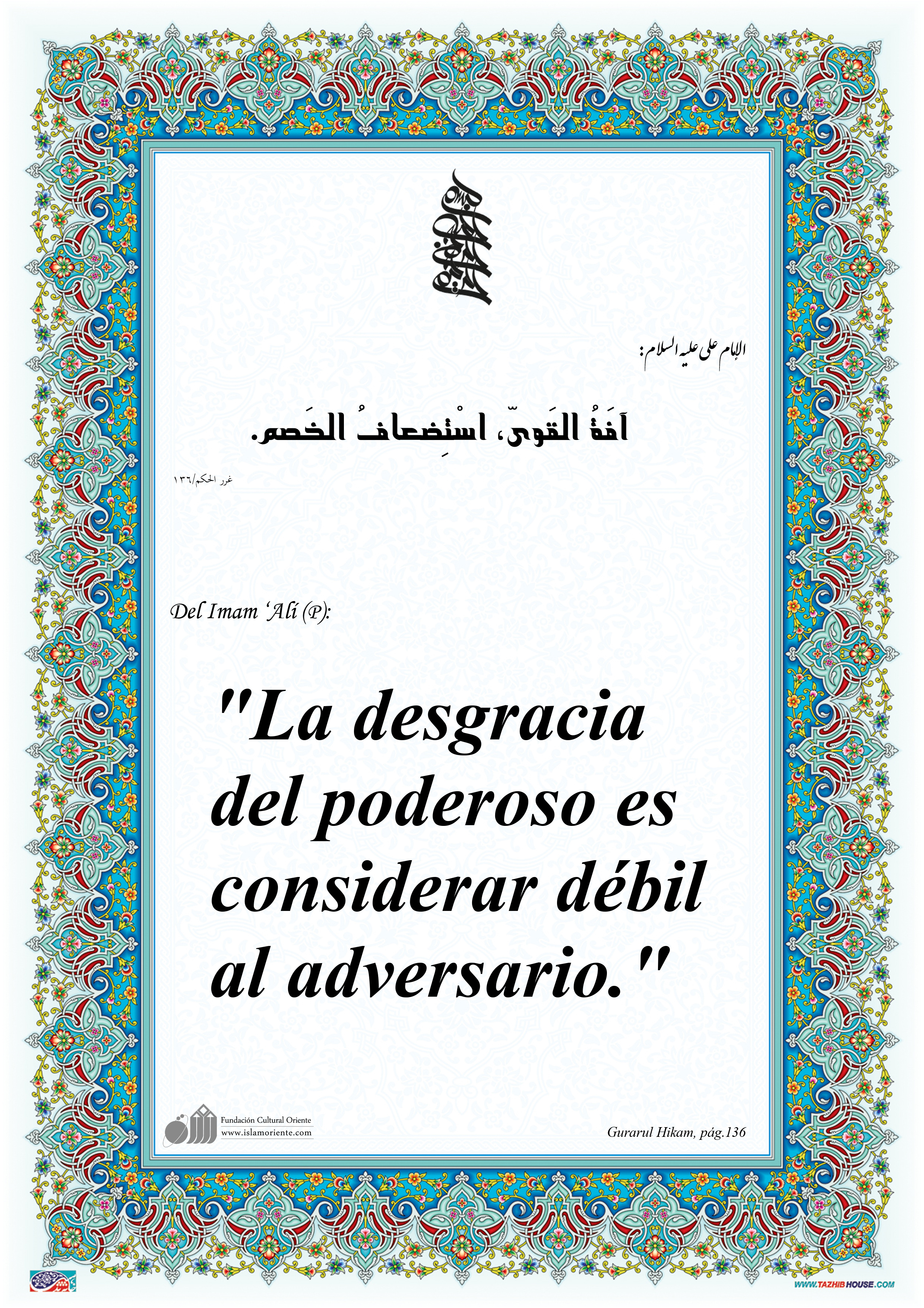 Del Imam ‘Alí (P): "La desgracia del poderoso es considerar débil al adversario."