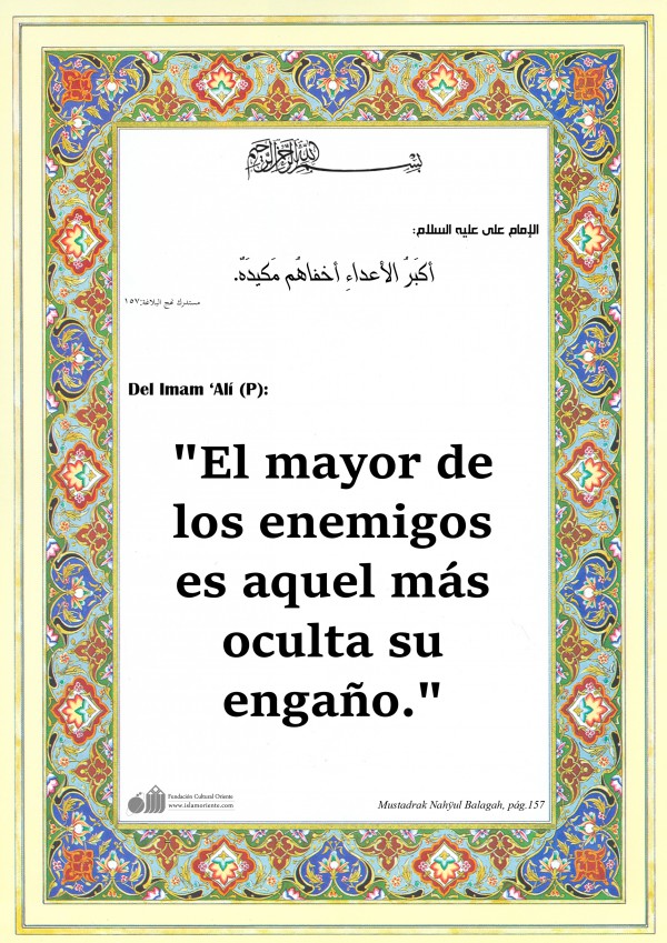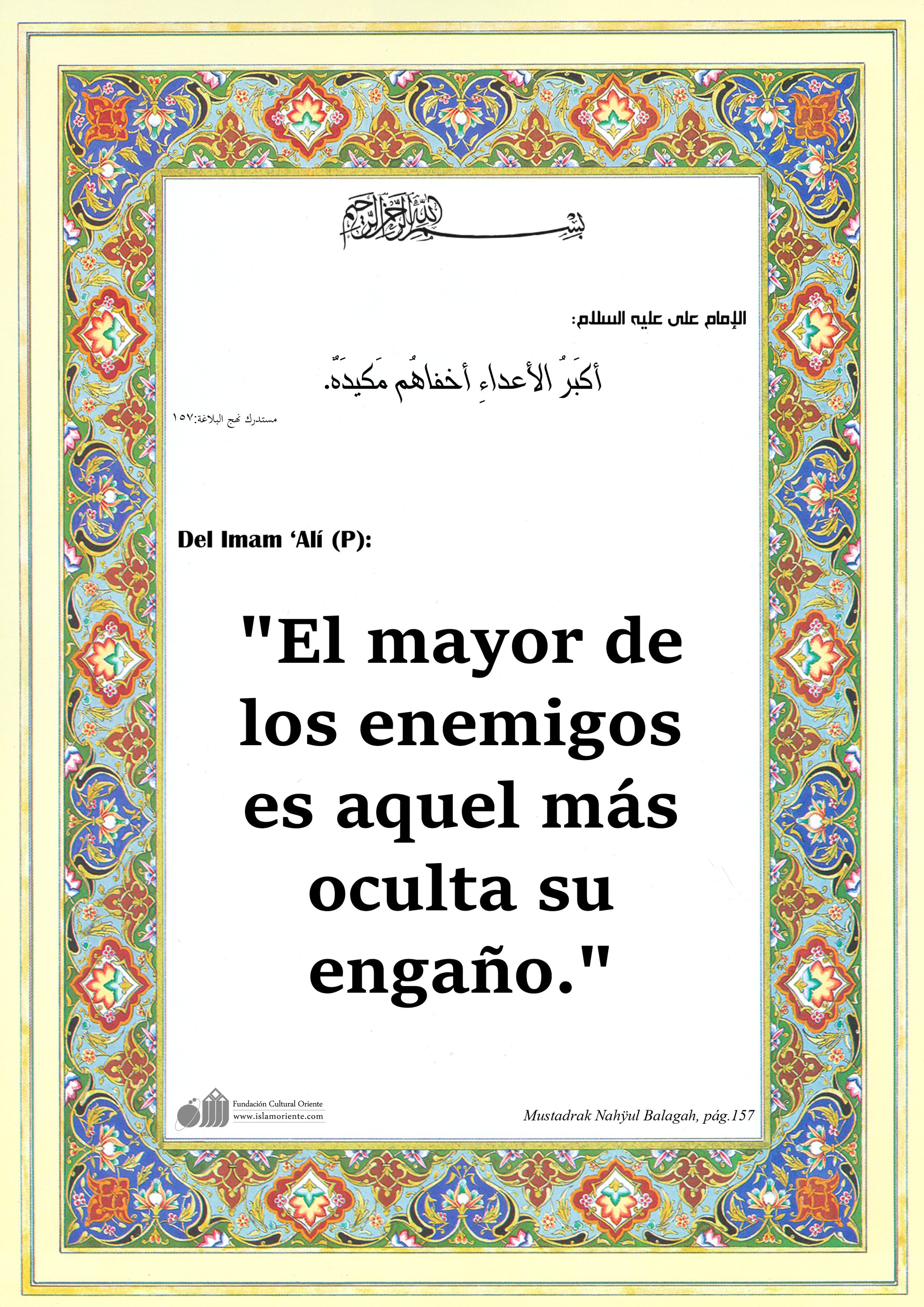 Del Imam ‘Alí (P): "El mayor de los enemigos es aquel más oculta su engaño."