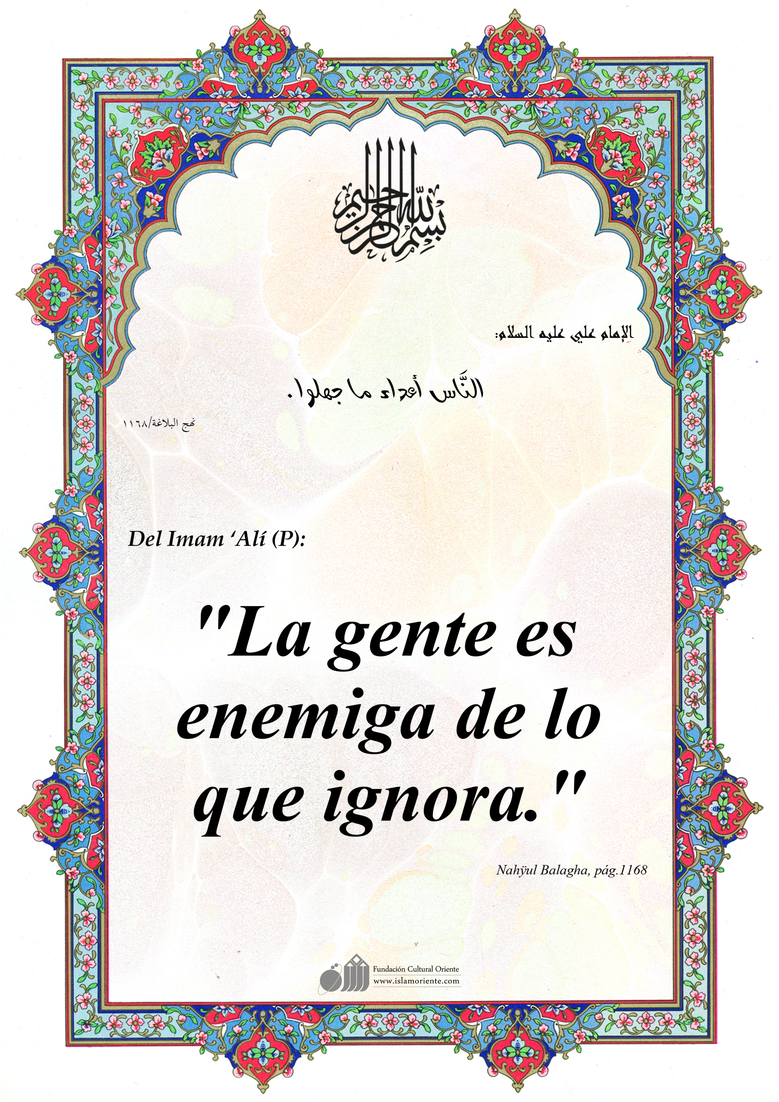 Del Imam ‘Alí (P): "La gente es enemiga de lo que ignora."