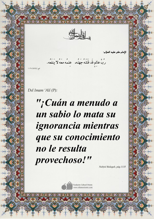 Del Imam ‘Alí (P): "¡Cuán a menudo a un sabio lo mata su ignorancia mientras que su conocimiento no le resulta provechoso!"