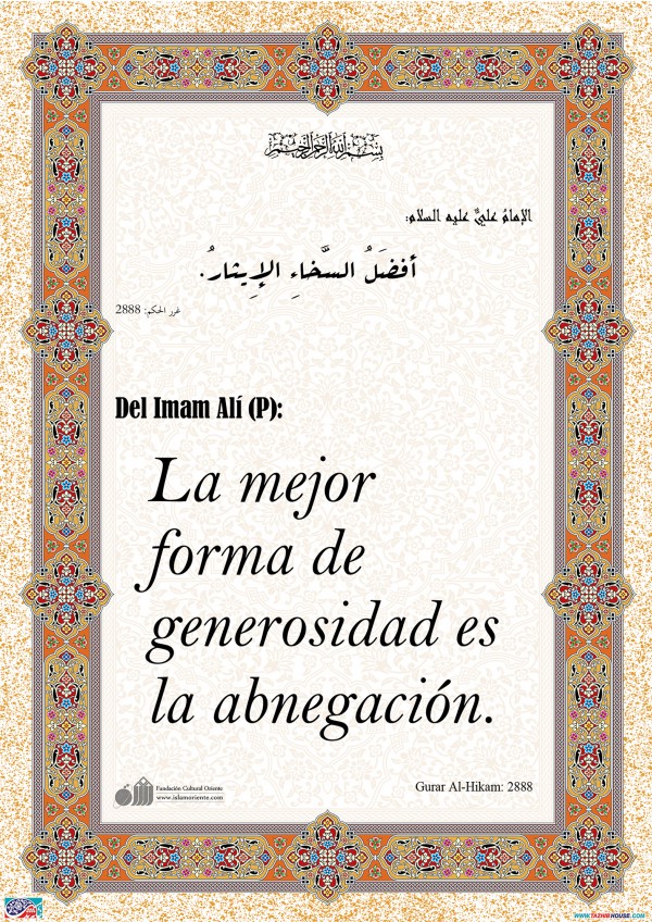 Del Imam Alí (P): La mejor forma de generosidad es la abnegación.