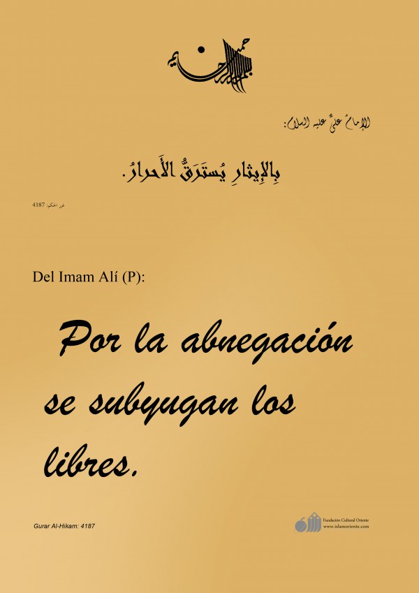 Del Imam Alí (P): Por la abnegación se subyugan los libres.