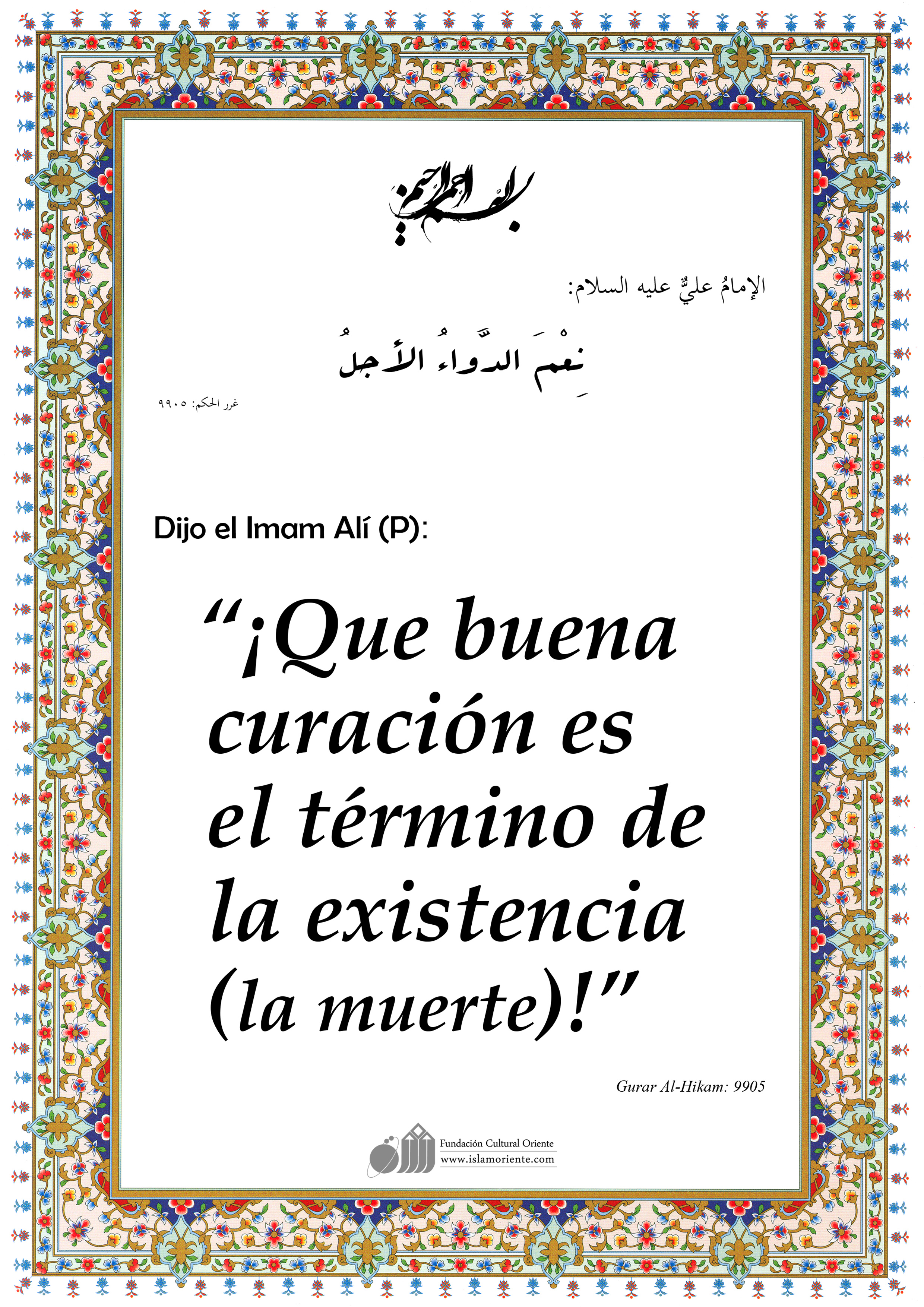 Dijo el Imam Alí (P): “¡Que buena curación es el término de la existencia (la muerte)!”.