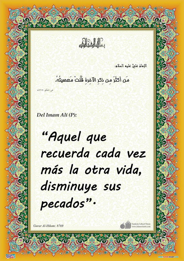 Del Imam Alí (P): “Aquel que recuerda cada vez más la otra vida, disminuye sus pecados”.