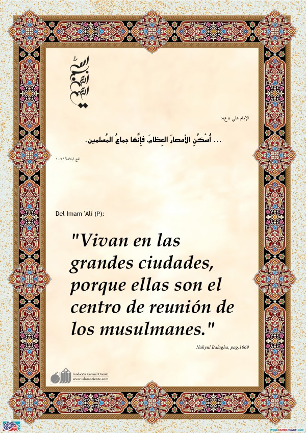 Del Imam 'Alí (P): "Vivan en las grandes ciudades, porque ellas son el centro de reunión de los musulmanes."