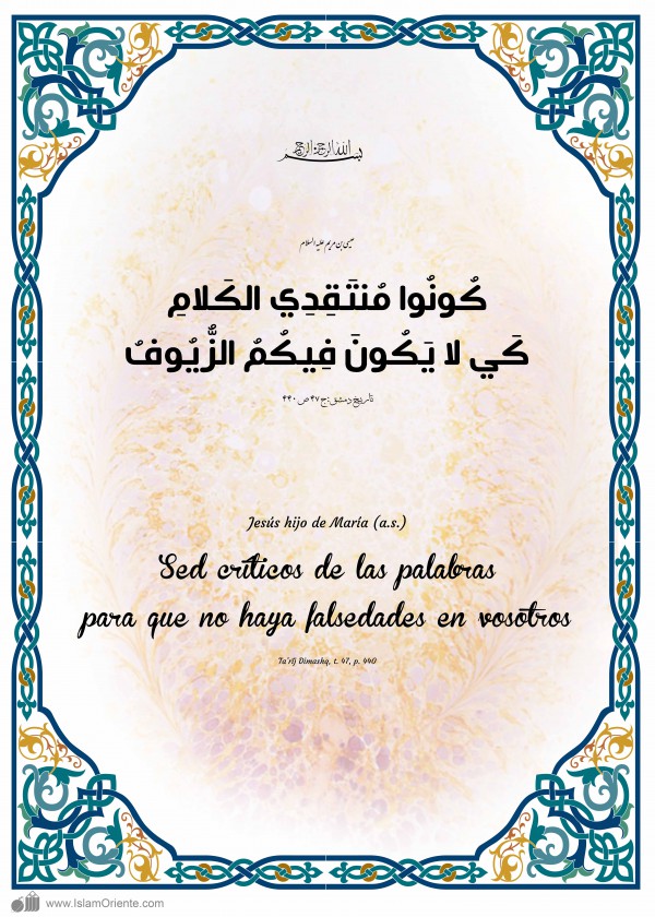 Jesús hijo de María (a.s.): Sed críticos de las palabras, para que no haya falsedades en vosotros.[3]