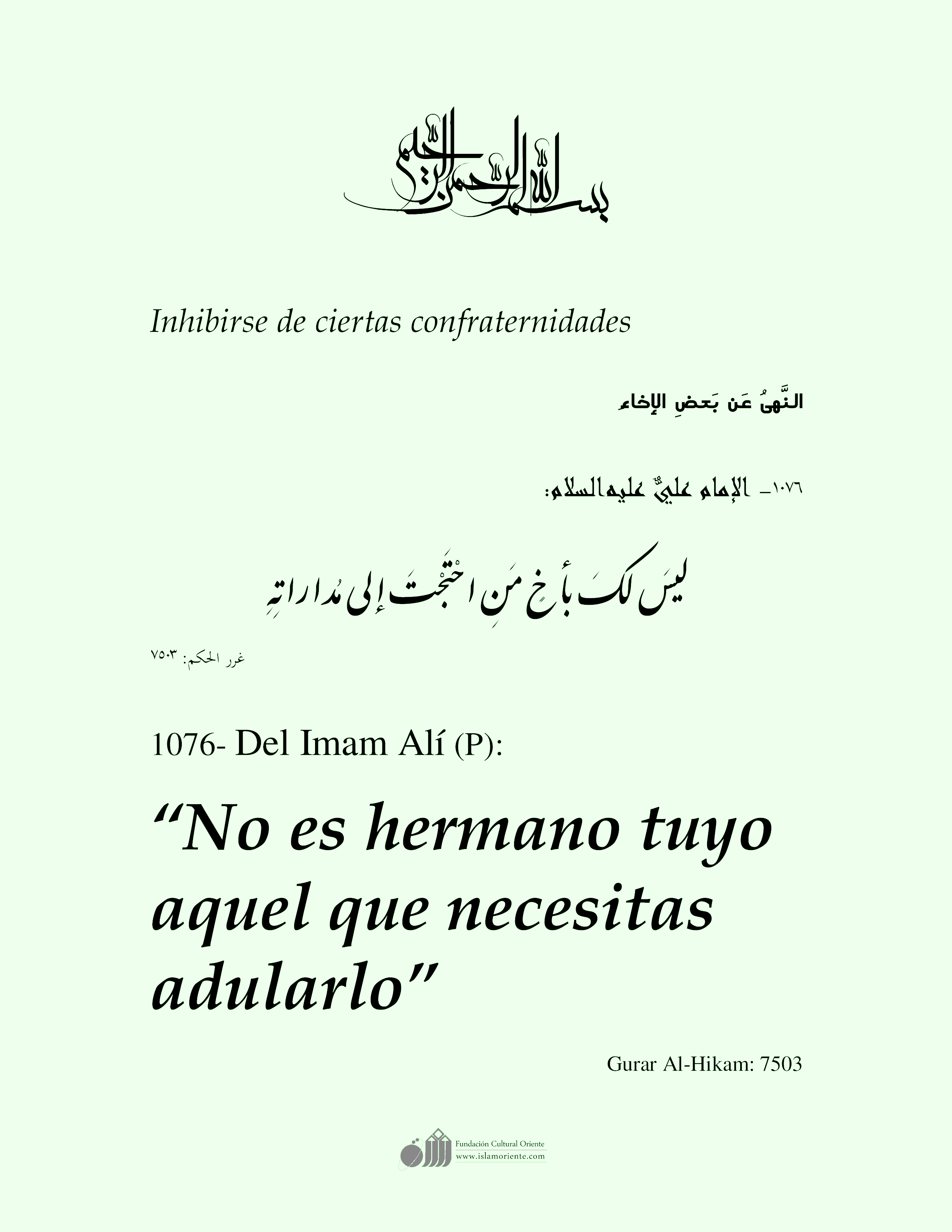 Del Imam Alí (P): “No es hermano tuyo aquel que necesitas adularlo”