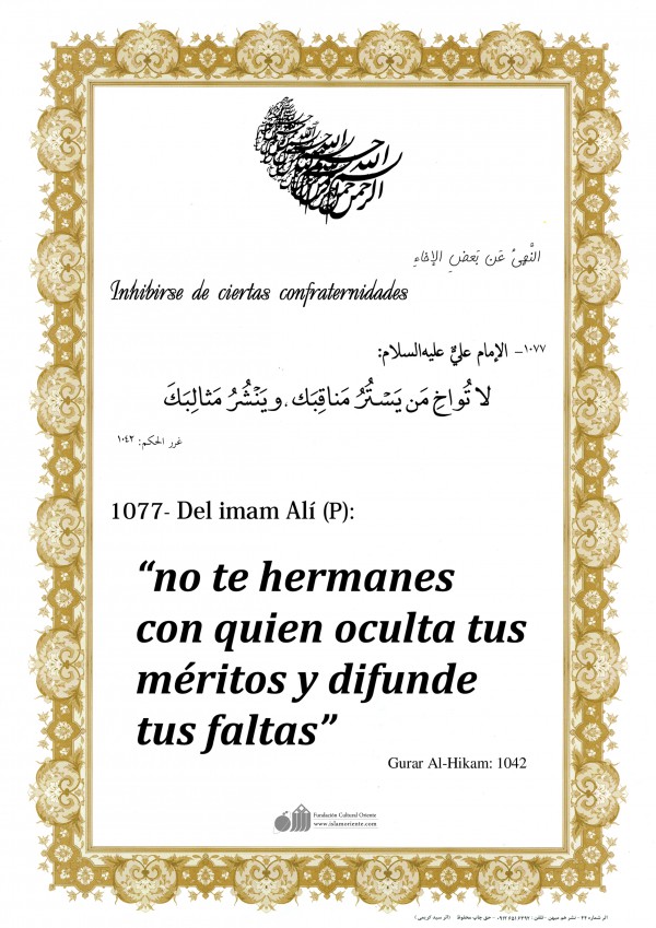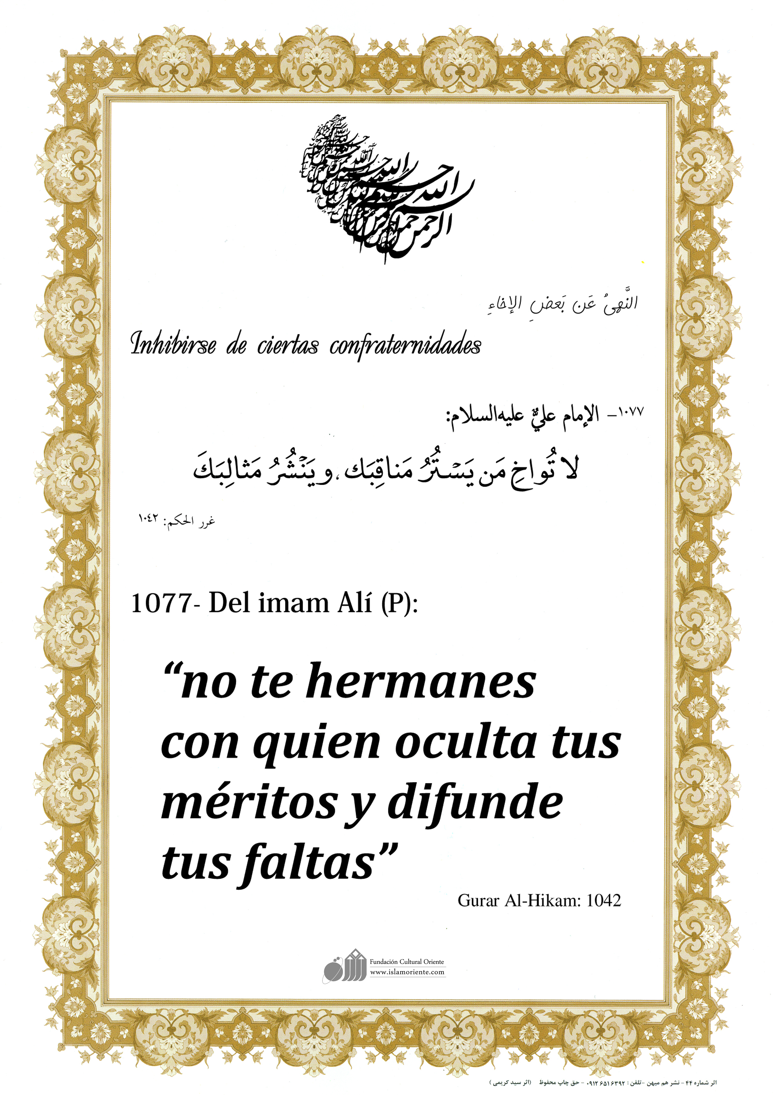 Del imam Alí (P): “no te hermanes con quien oculta tus méritos y difunde tus faltas”