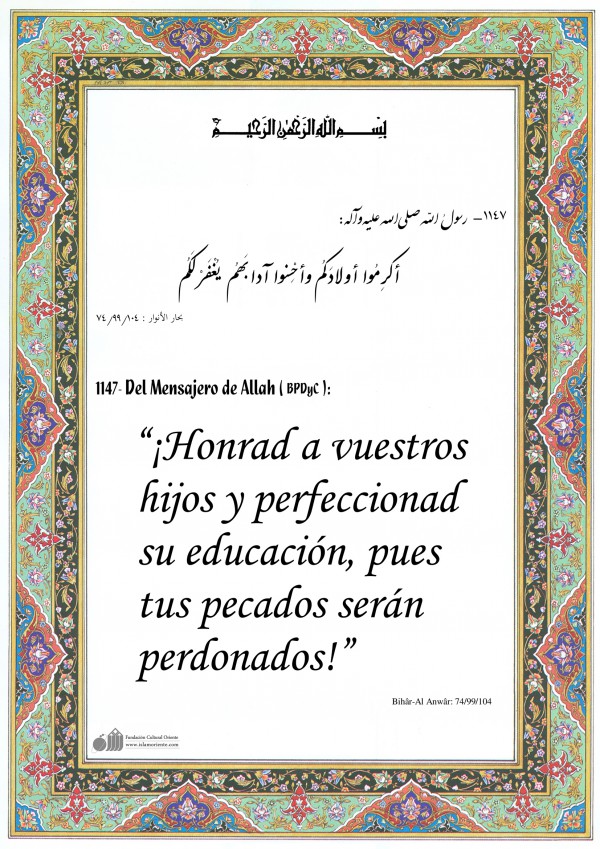 Del Mensajero de Allah (BPDyC): “¡Honrad a vuestros hijos y perfeccionad su educación, pues tus pecados serán perdonados!”