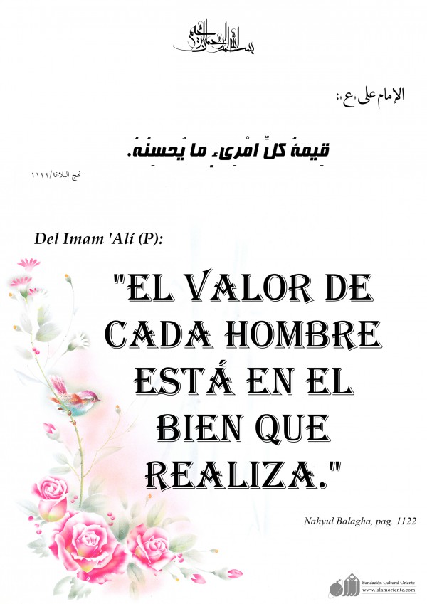 Del Imam 'Alí (P): "El valor de cada hombre está en el bien que realiza."