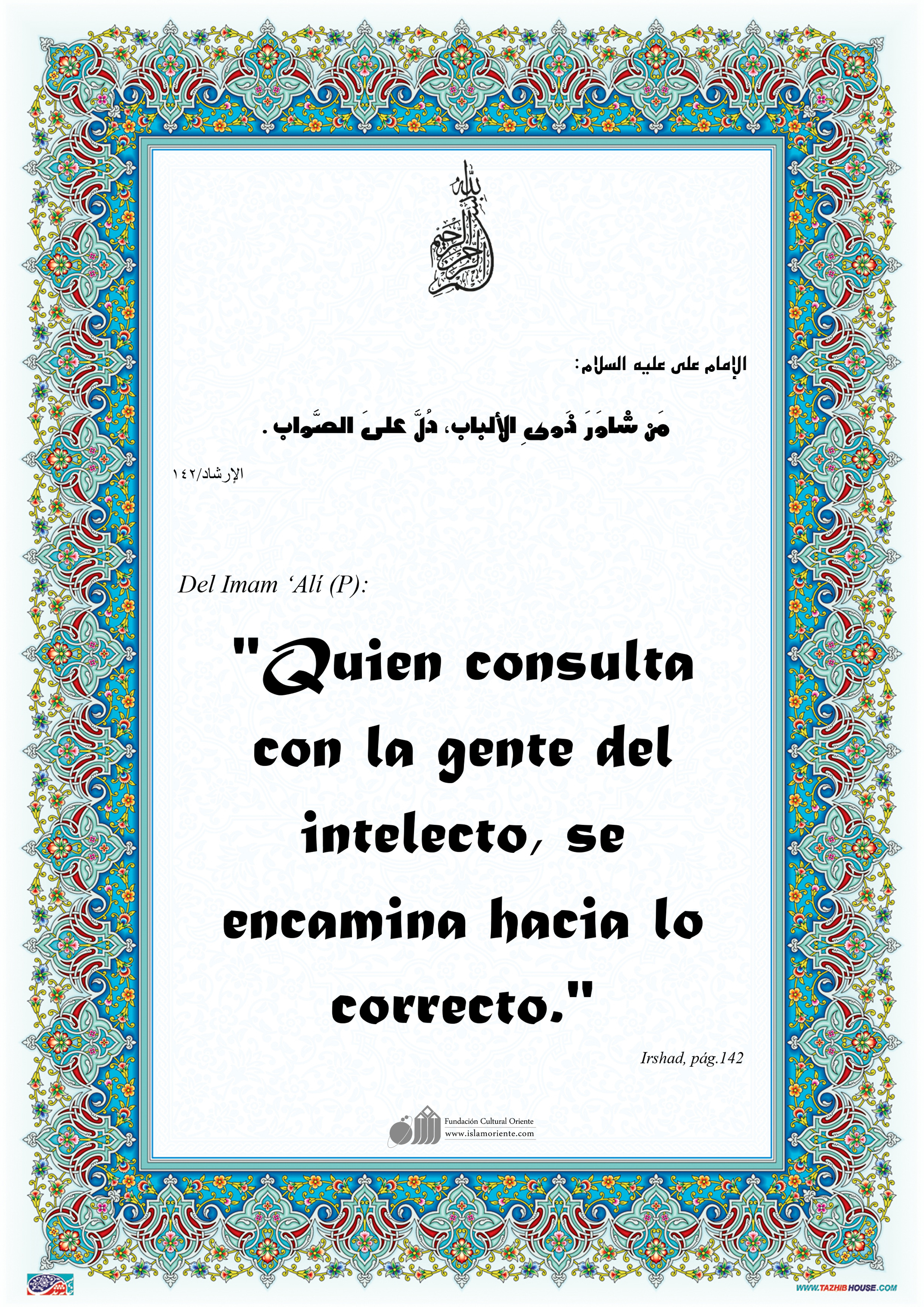 Del Imam ‘Alí (P): "Quien consulta con la gente del intelecto, se encamina hacia lo correcto."