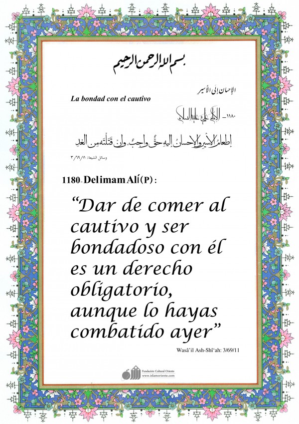 Del imam Alí (P): “Dar de comer al cautivo y ser bondadoso con él es un derecho obligatorio, aunque lo hayas combatido ayer”