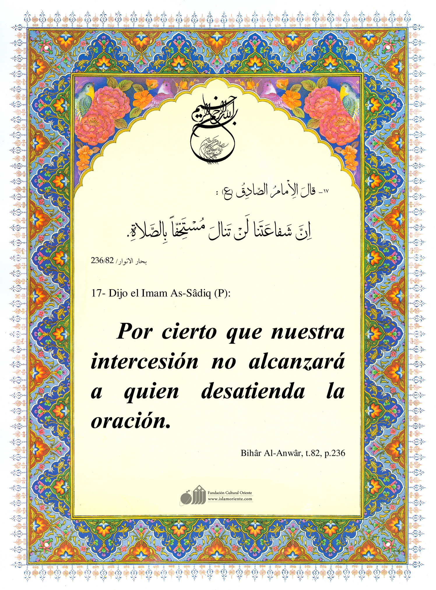 Dijo el Imam As-Sâdiq (P): Por cierto que nuestra intercesión no alcanzará a quien desatienda la oración.