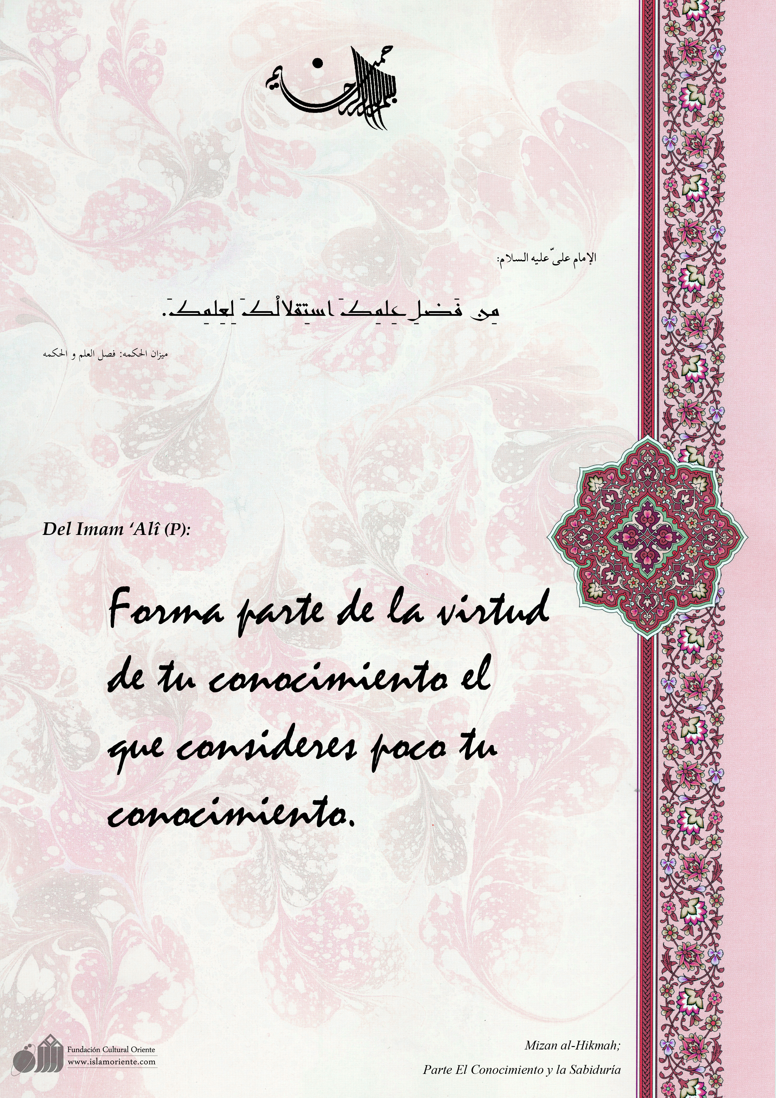 Del Imam ‘Alî (P): Forma parte de la virtud de tu conocimiento el que consideres poco tu conocimiento.[I]