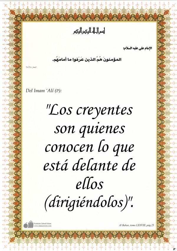 Del Imam ‘Alí (P): "Los creyentes son quienes conocen lo que está delante de ellos (dirigiéndolos)".